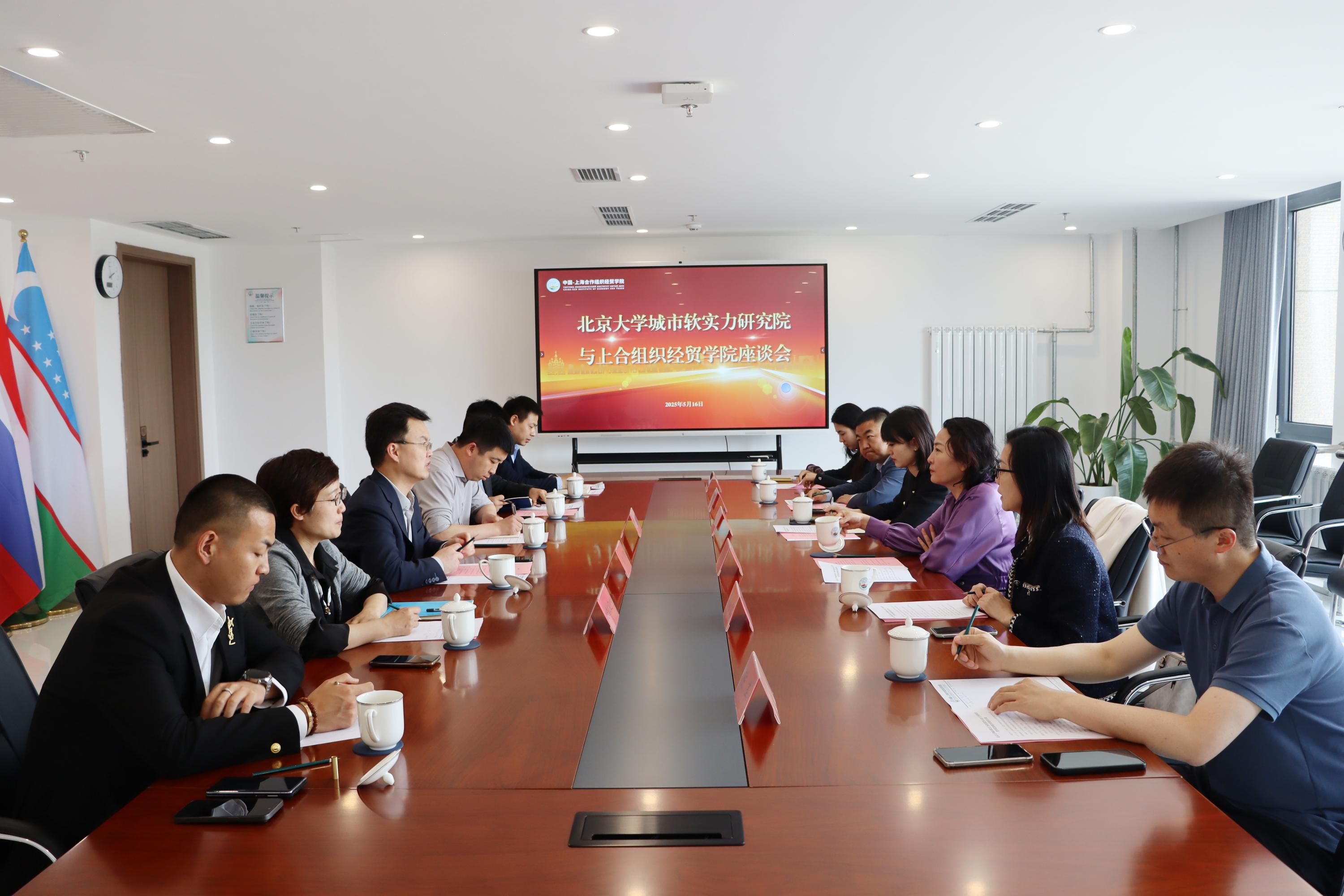 2025 年 5 月 16 日,北京大学经济学院教授、北京大学城市软实力研究院院长许云霄带队赴中国—上海合作组织经贸学院考察交流。中国—上海合作组织经贸学院院长郑师陪同参观并进行了深入座谈。